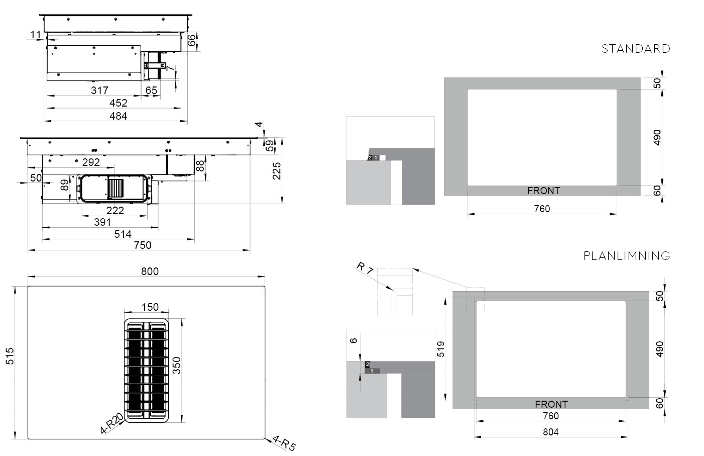 - Produkt (BxDxH) 800 x 515 x 255 mm