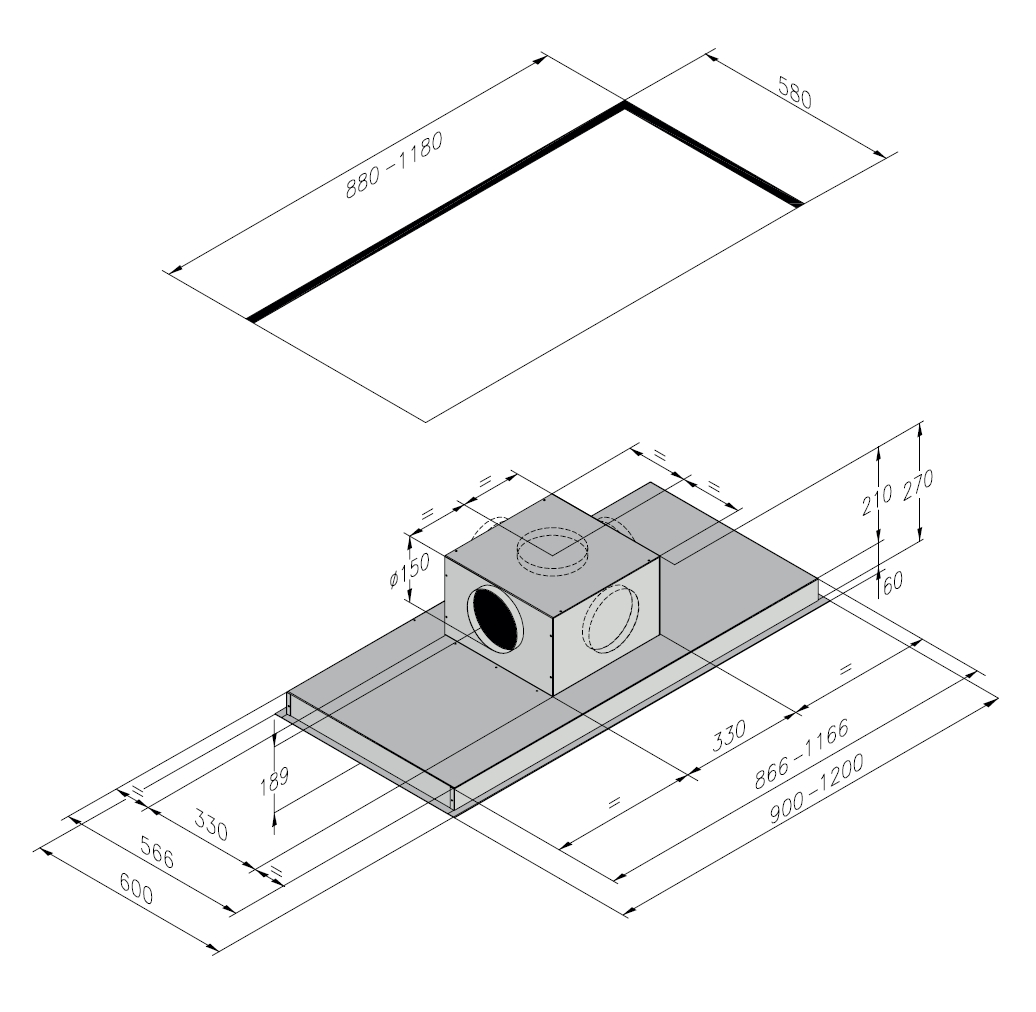 - Produkt (BxDxH) 900 x 600 x 270 mm