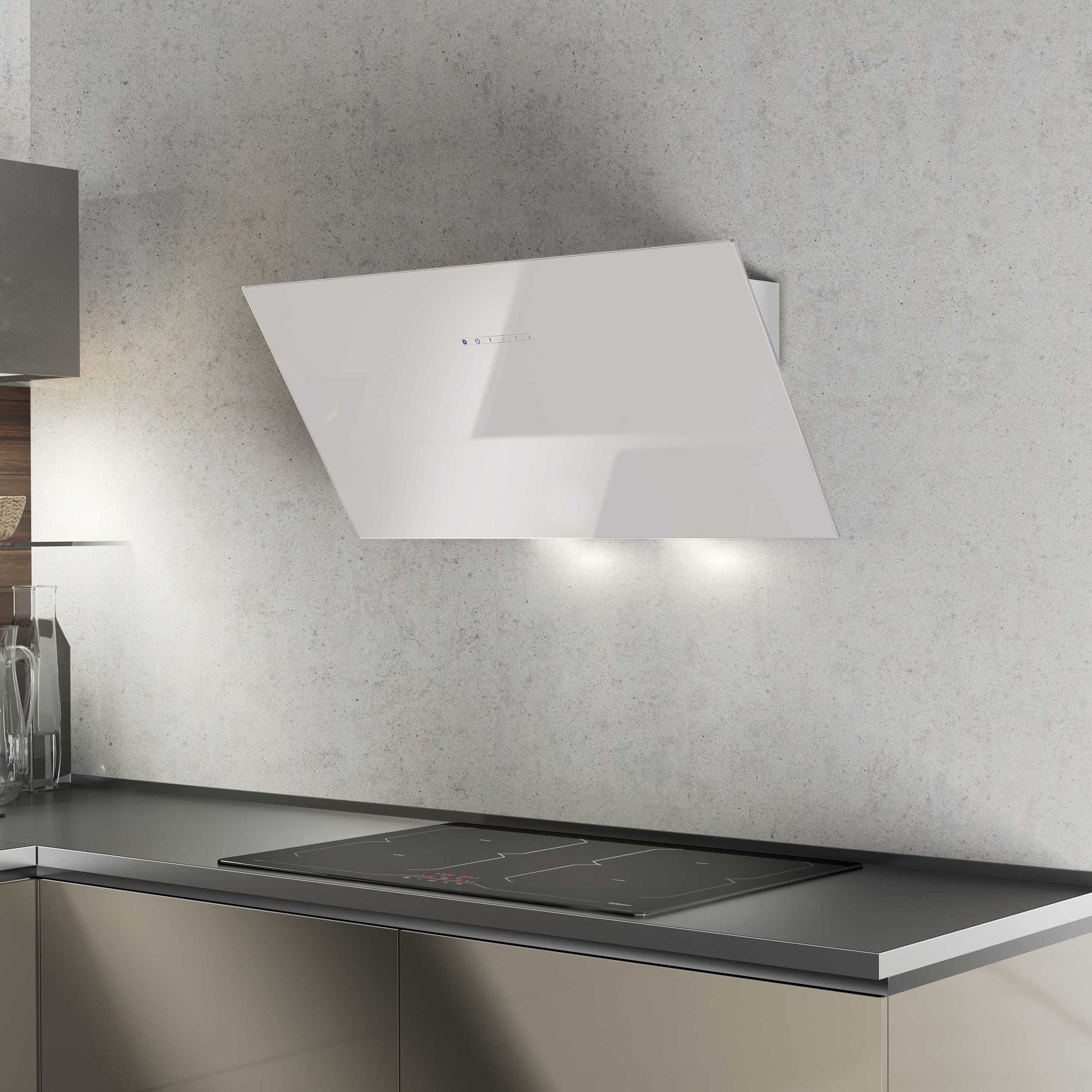 Veggmontert hette, skråstilt. Med innebygget motor - Hvit / optic white glass - 800 mm - A