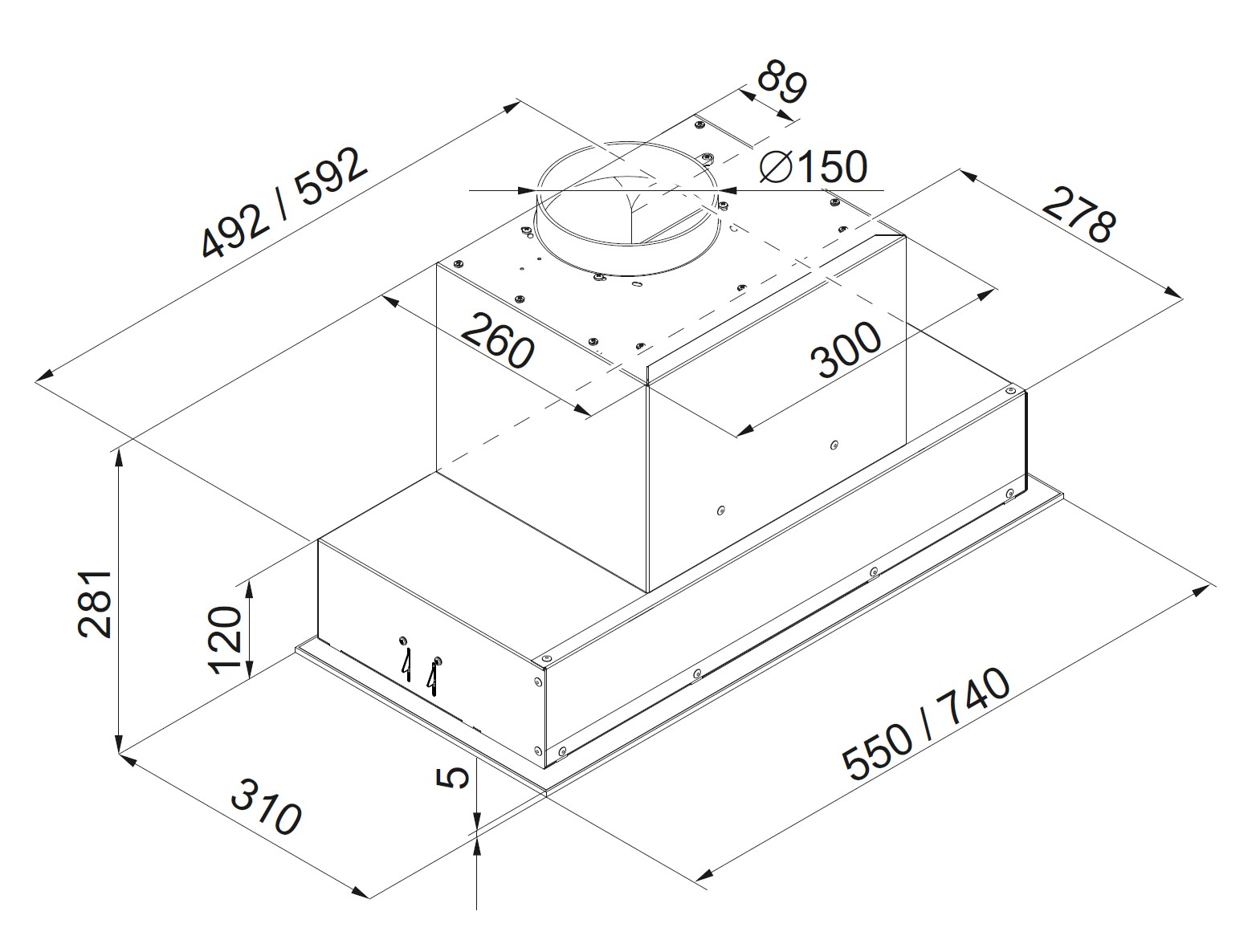 - Produkt (BxDxH) 740 x 310 x 281 mm
