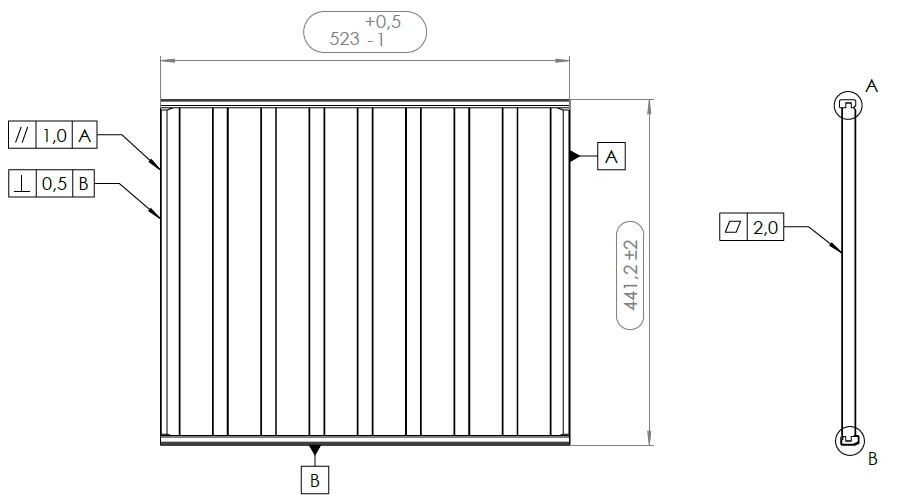 - Produkt (BxDxH) 523 x 441 x 2 mm
