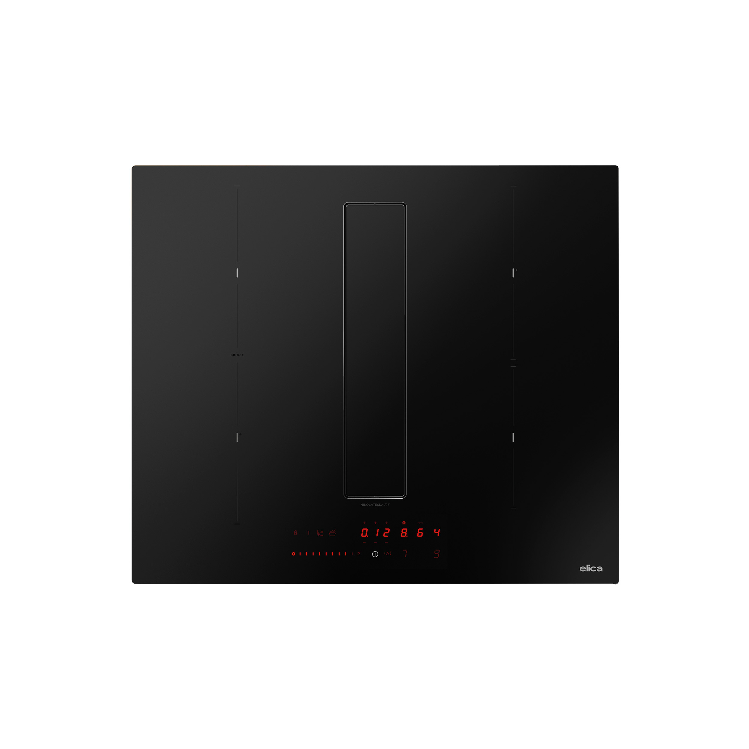 1 kokesone: 21 x 19 cm / 2.100 W (3.000 W) + 1 kokesone: 21 x 19 cm / 1.600 W (1.850 W) + 1 kokesone: Ø20 / 2.300 W (3.000 W) + 1 kokesone: Ø16 / 1.200 W (1.400 W). Denne modellen leveres uten rør. Kabel og støpsel er inkludert i kassen, men ikke påmontert. Det er avrundede hjørner og modellen kan enten nedlegges eller integreres i benkeplaten. Når det er viktig å kunne fokusere på matlaging, kan du aktivere Autocapture-funksjonen. Ventilatorens sugestyrke justeres automatisk avhengig av antallet kokesoner som er i bruk, kombinert med effekten de er stilt inn på.
