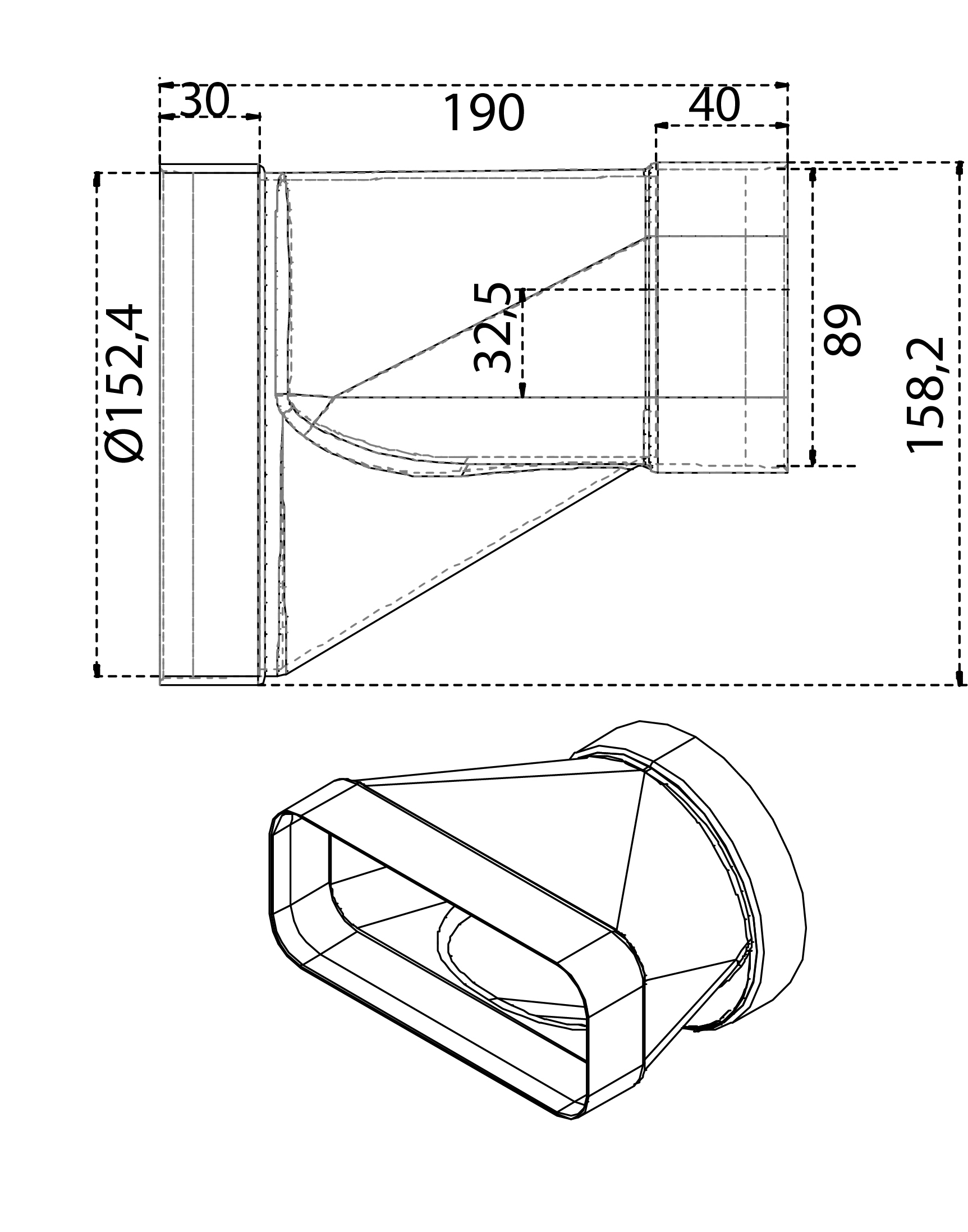 Overgang fra 90x220 til Ø150 – gjør det enkelt å koble ulike kanaltyper sammen.