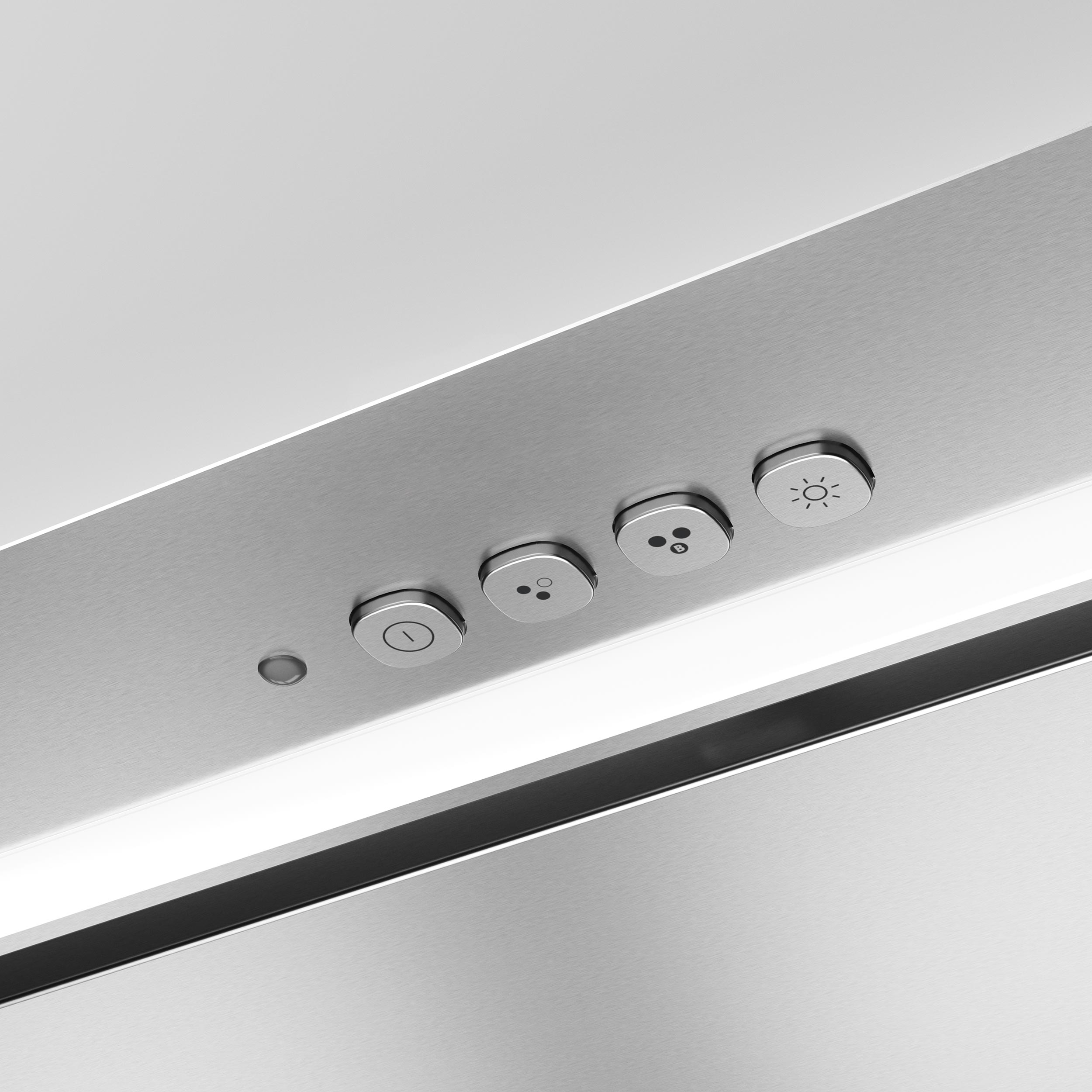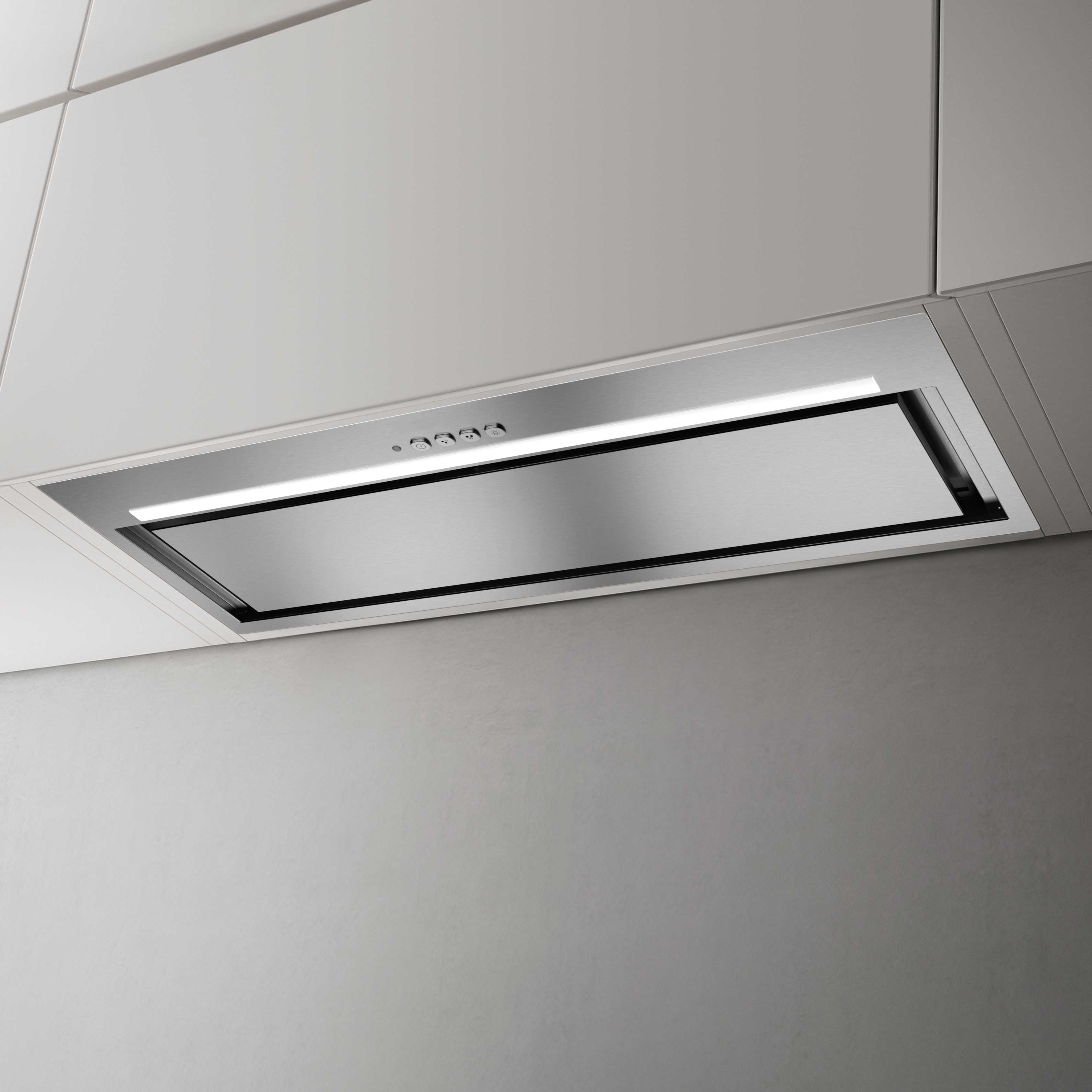 Integrert rustfri ventilator for innbygging under overskap – med kantutsug og LED-lys