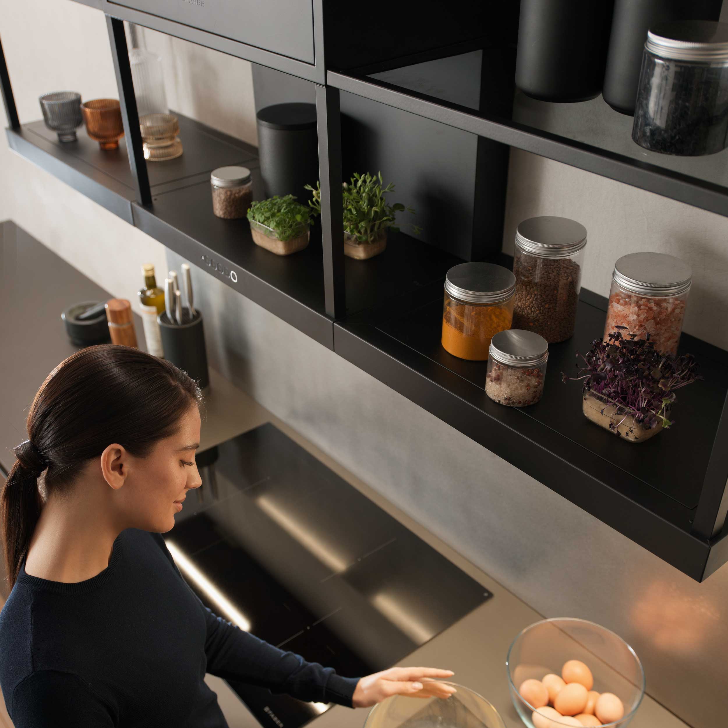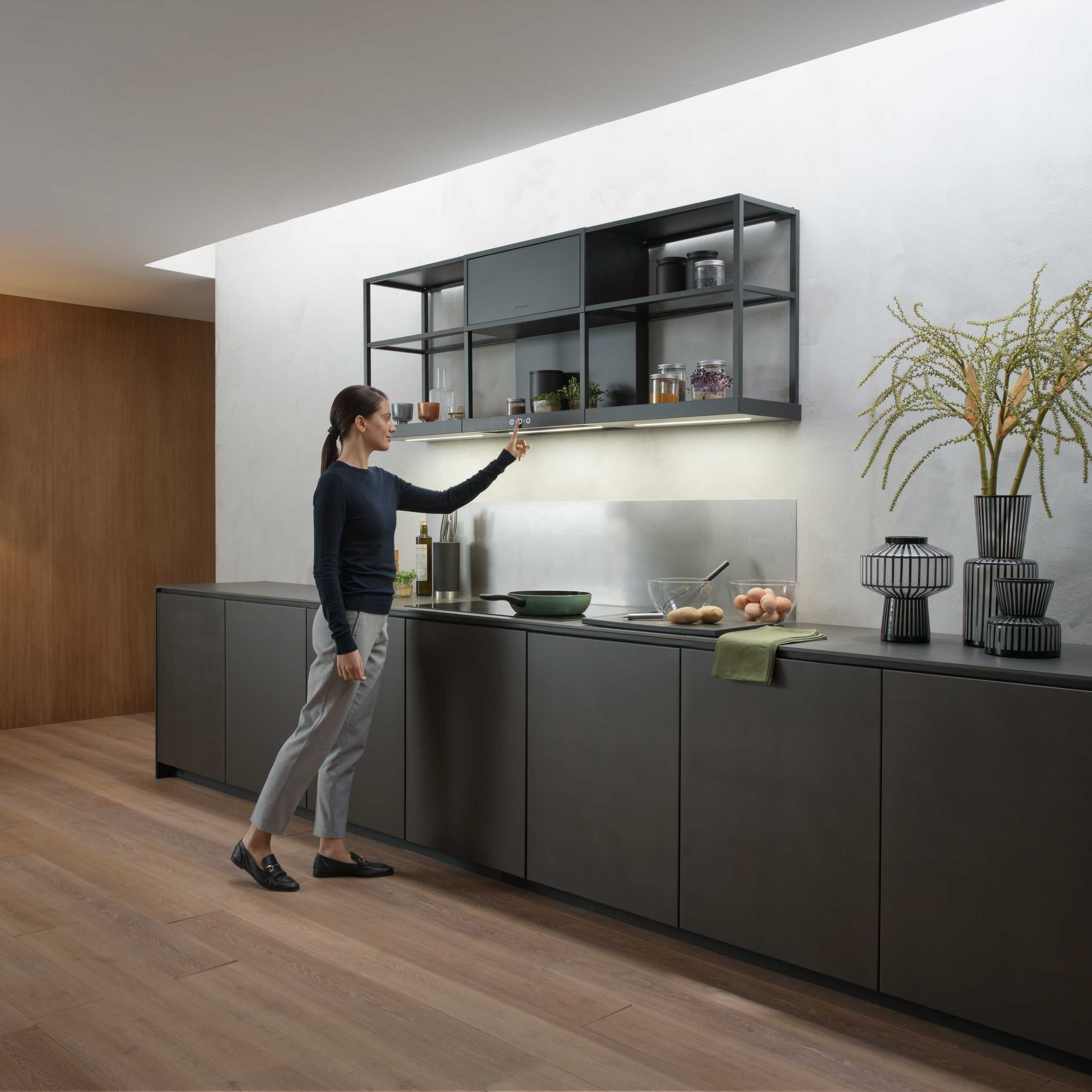Modular Shelf Module er et tilbehør til Open Suite-systemet og gir ekstra oppbevaringsplass med et lett, industrielt uttrykk. Kombiner med lys- eller avtrekksmoduler for å skape din egen løsning.