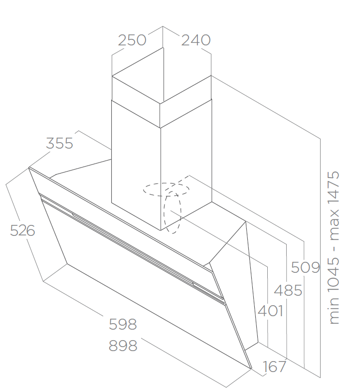 Direct Air Flow Direkte innsuging i bunnen av skråtstilte veggmodell. Denne funksjonen optimerer sugeeffekten på skråstillte ventilatorer og utnytter sugekapasiteten optimalt