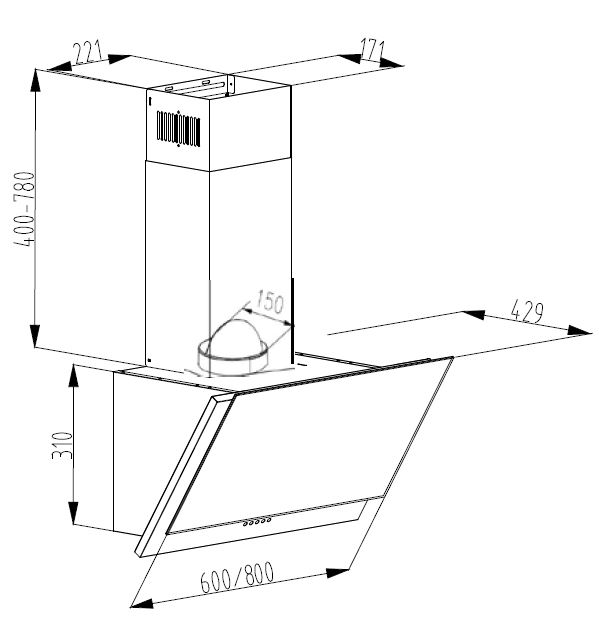 Veggmontert hette, skråstilt. Med innebygget motor - Grey Stone - 600 mm - A++
